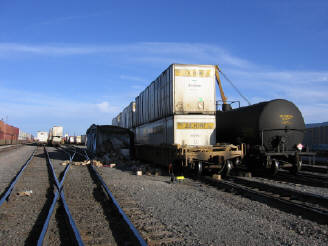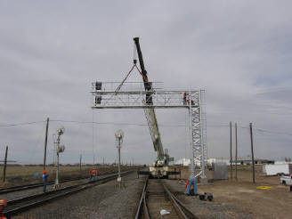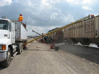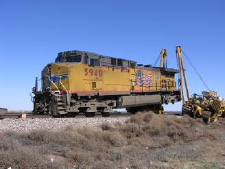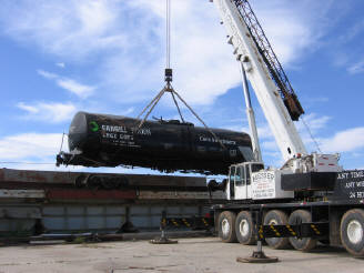 From load adjustments to train derailments, Messer Construction Co., Inc. strives to exceed the demands brought forth by the railroads. Since our inception in 1943, we have acquired a fleet of trucks and heavy equipment. While our main focus is providing railroad services, we offer Deaf Smith County many useful services such as crushed rock and caliche for feedyards and dairies, road building and preparation, and crane work. We are currently expanding our operations to include vehicle towing and salvage, and scrap salvage. Here, our two 594 Caterpillar Sidebooms lift an engine to change a traction motor. Here, a side boom off load a leaning container. We can off load using sidebooms or cranes. Transferring grain from the rail into a haul truck. Here is the machine responsible for making the ground work for the majority of the feedyards and dairies in Deaf Smith County, the Beef Capital of the World. Our 110 Ton Crane lifting a tank car. Our 22 Ton Crane setting signals.